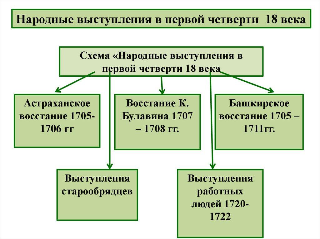 Народные выступления в первой четверти 18 векаСхема «Народные выступления в