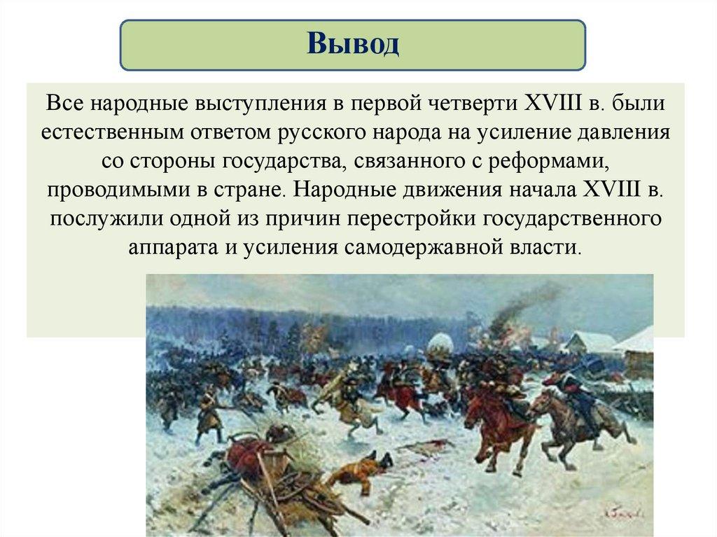 ВыводВсе народные выступления в первой четверти XVIII в. были