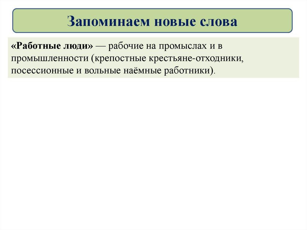 Запоминаем новые слова«Работные люди» — рабочие на промыслах и в