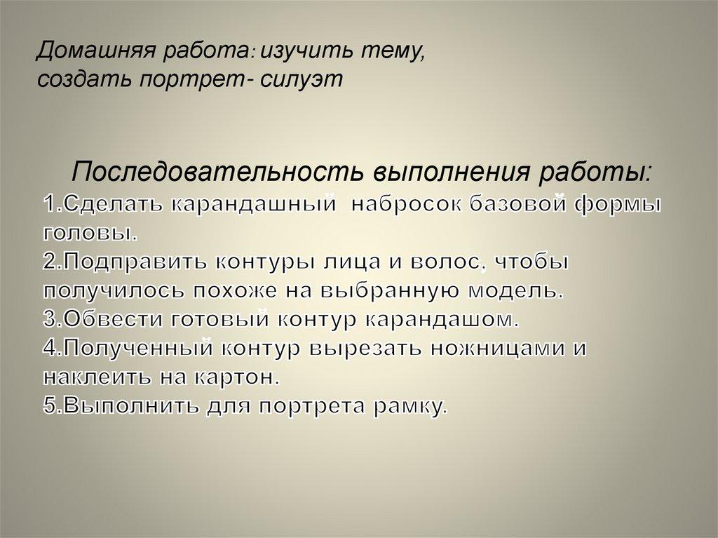 Домашняя работа: изучить тему,создать портрет- силуэт