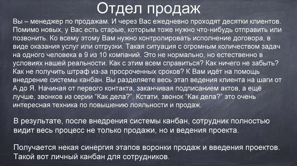 Отдел продажВы – менеджер по продажам. И через Вас ежедневно проходят десятки клиентов.