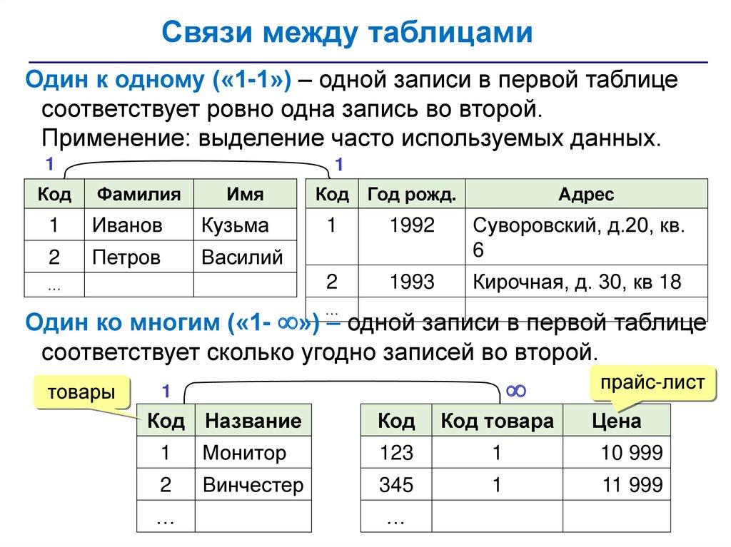 набор взаимосвязанных таблиц