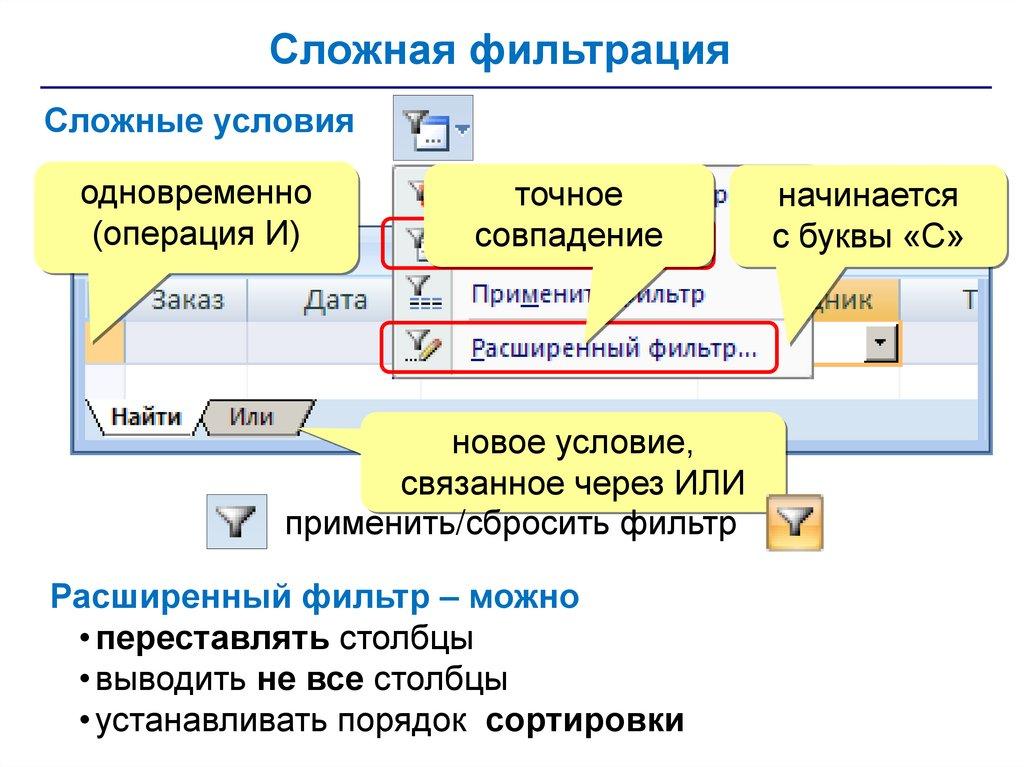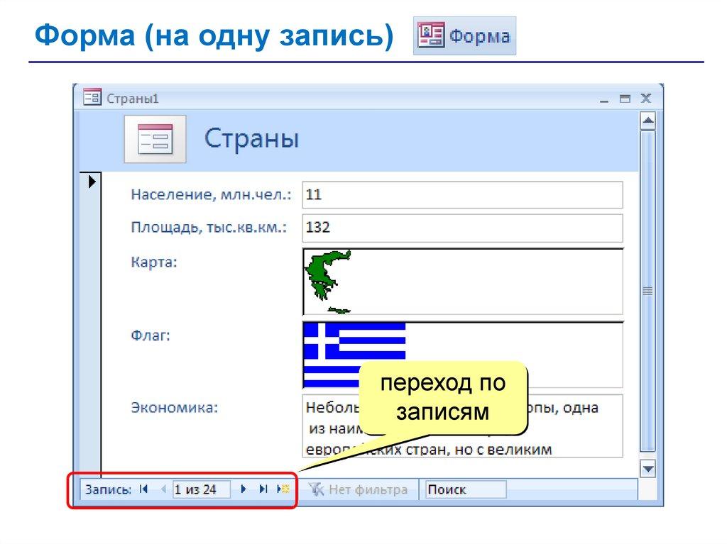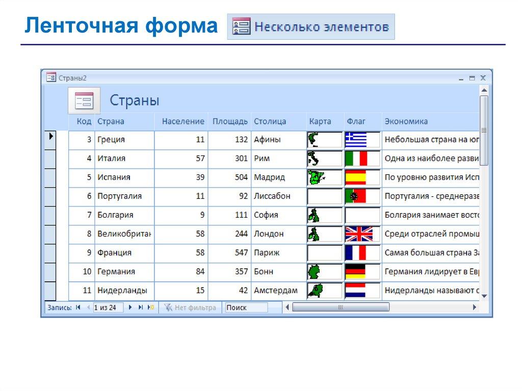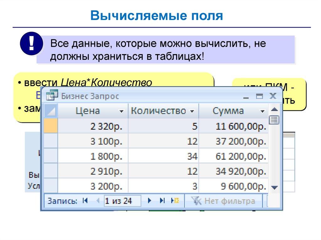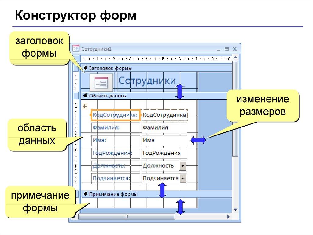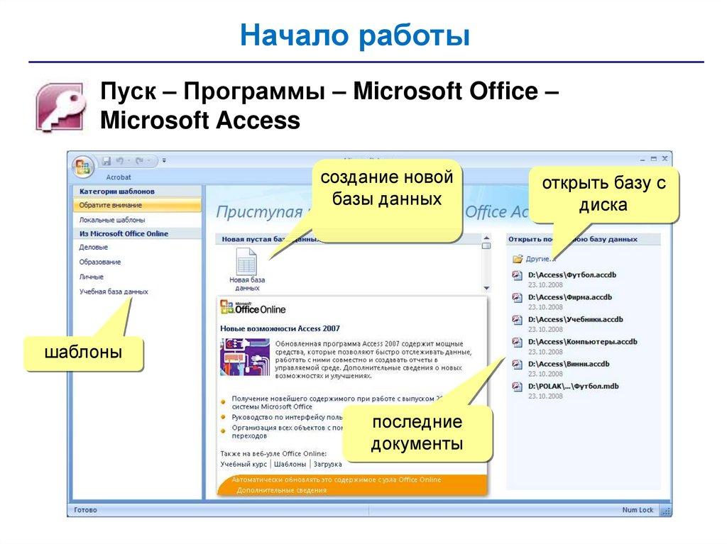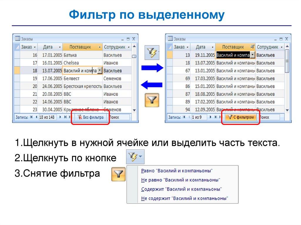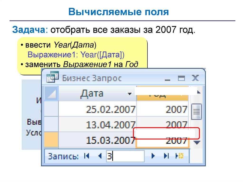 • запросы – обращения к базе данных для выбора