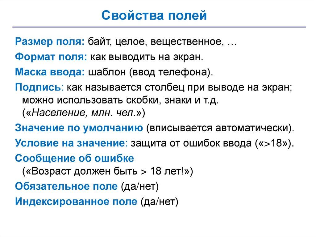 3.Поля могут иметь различный тип: