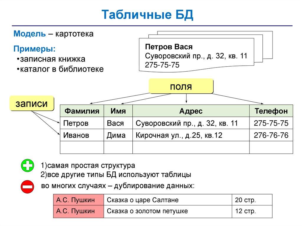 Табличные БДМодель – картотека