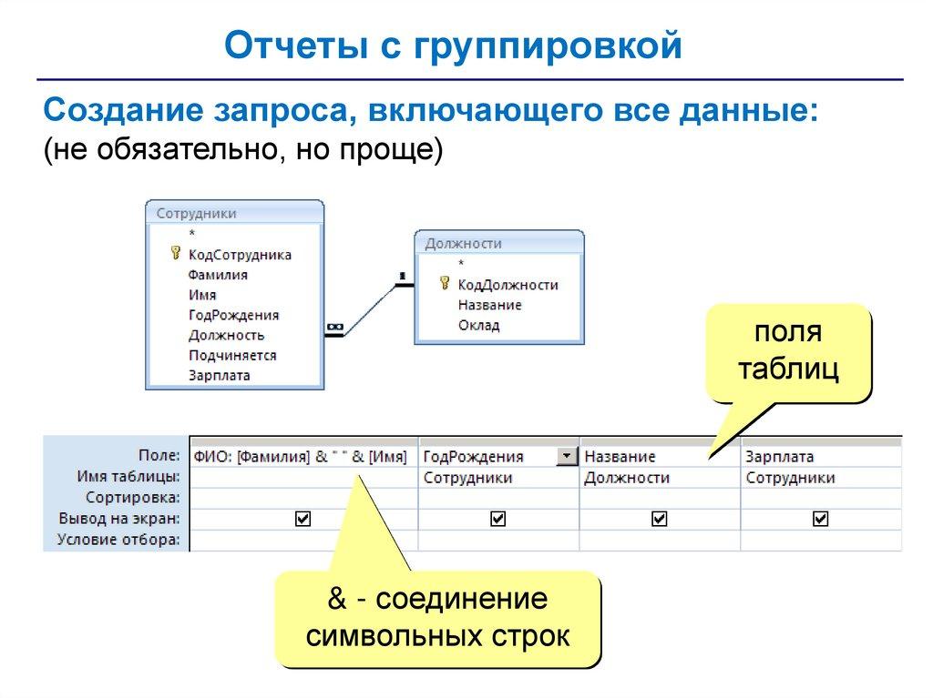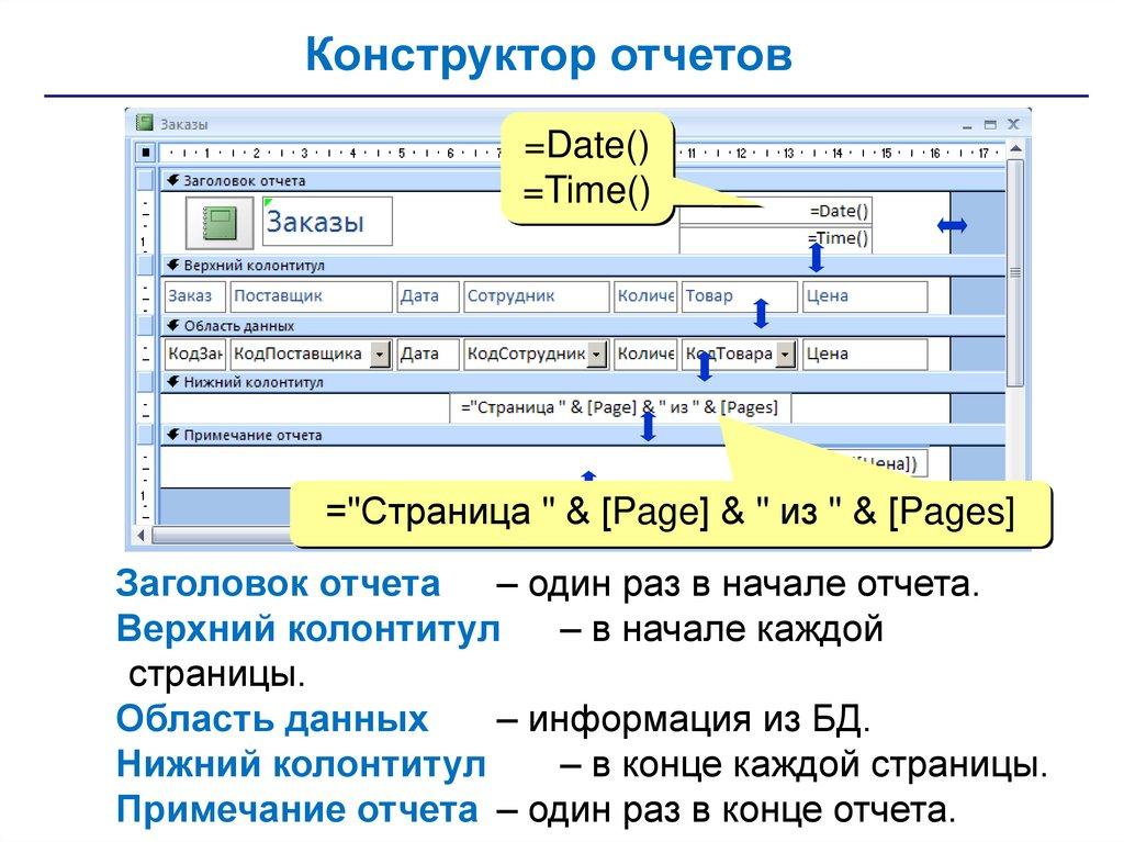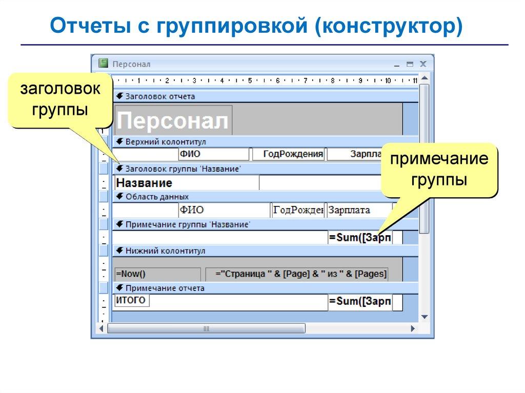 Отчеты с группировкой (конструктор)заголовок