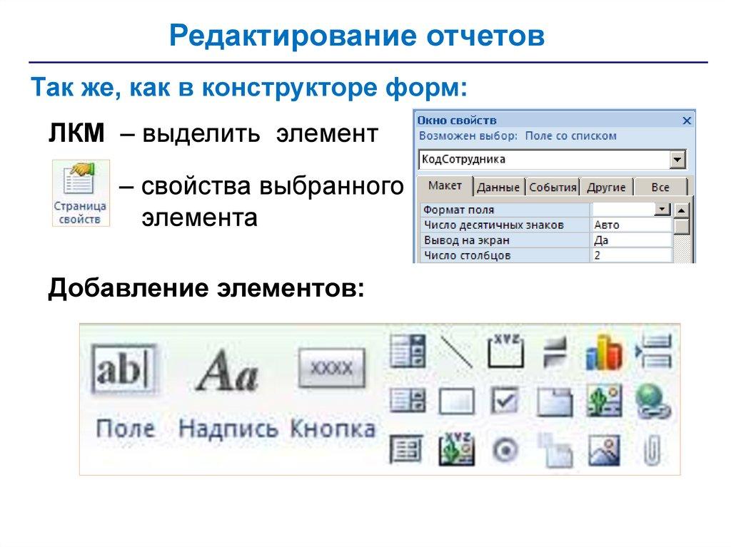 редактирования данных
