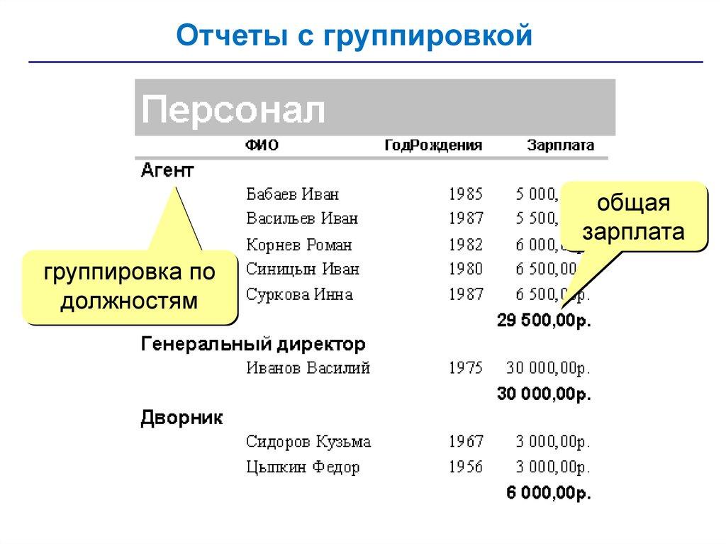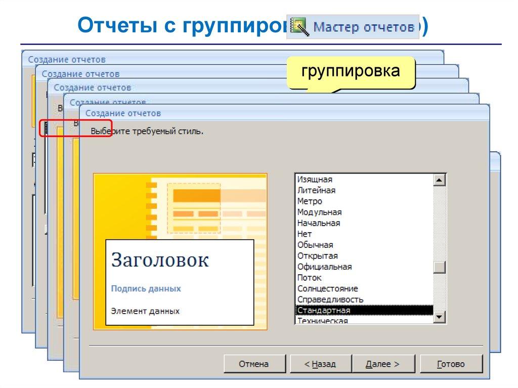 Отчеты с группировкой (мастер)группировка