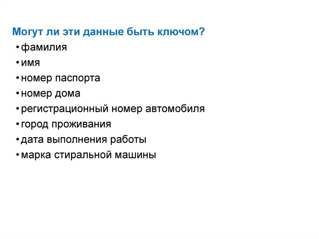 Могут ли эти данные быть ключом?• фамилия