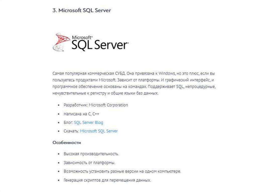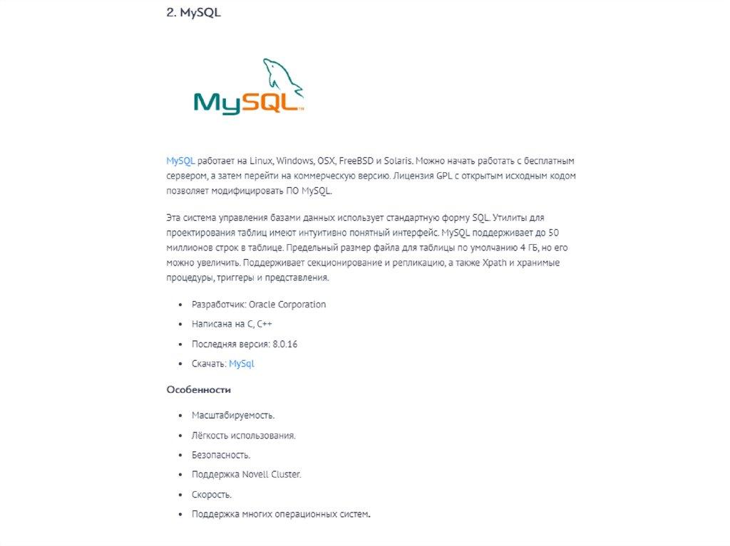 2)все другие типы БД используют таблицы