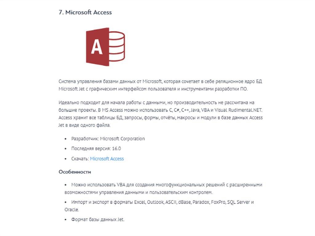 программное обеспечение для работы с БД.