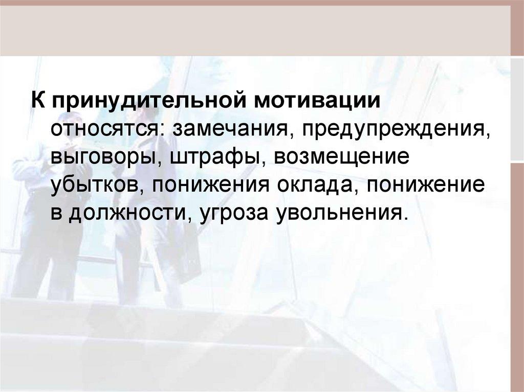 К принудительной мотивацииотносятся: замечания, предупреждения,