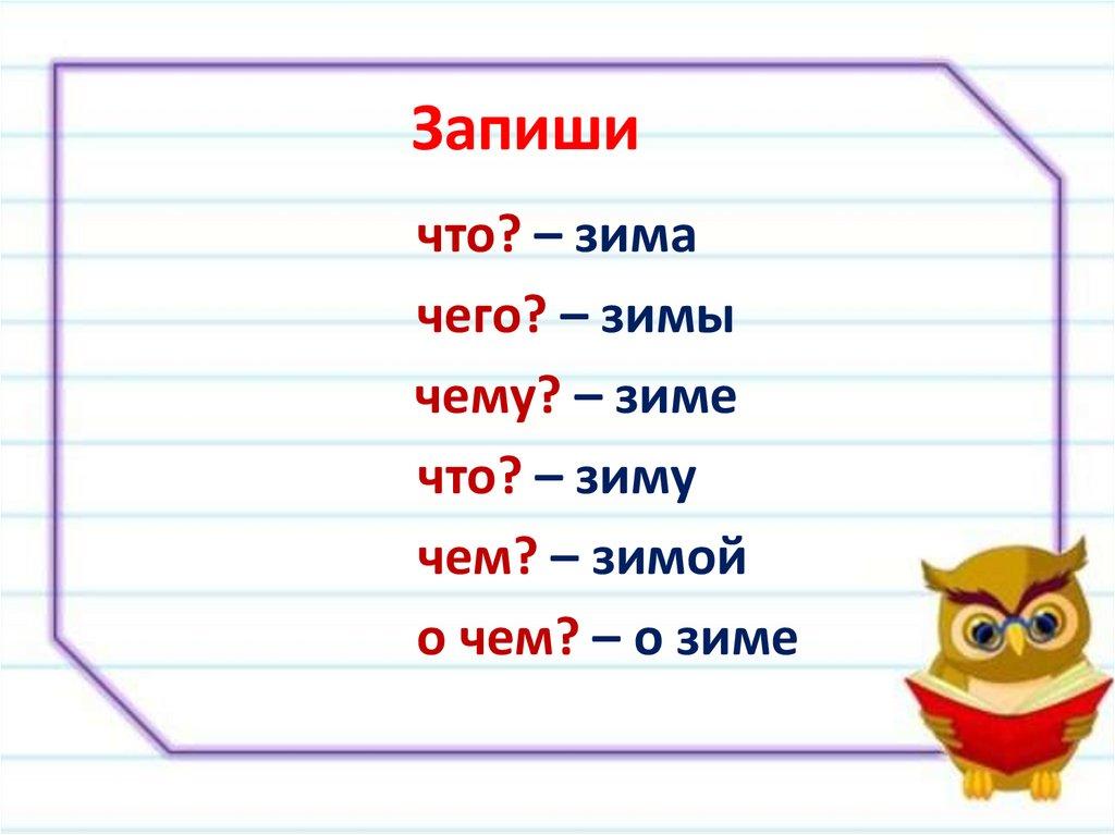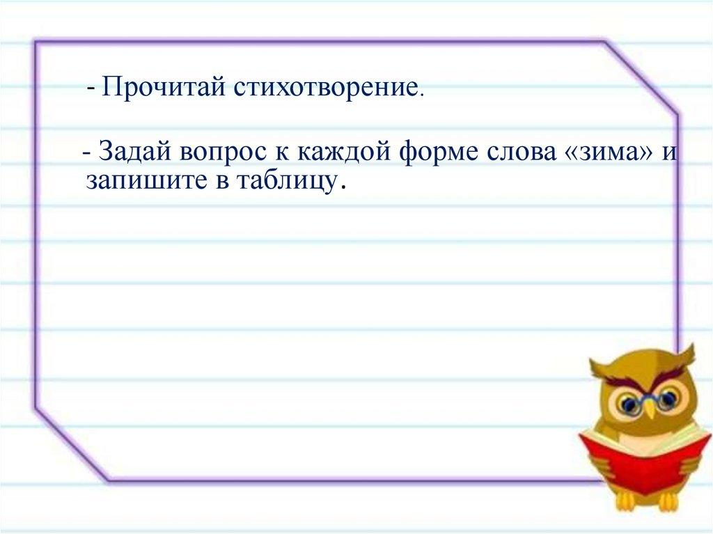 - Прочитай стихотворение.- Задай вопрос к каждой форме слова «зима» и