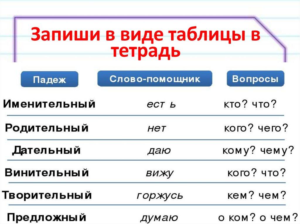запишите в таблицу.