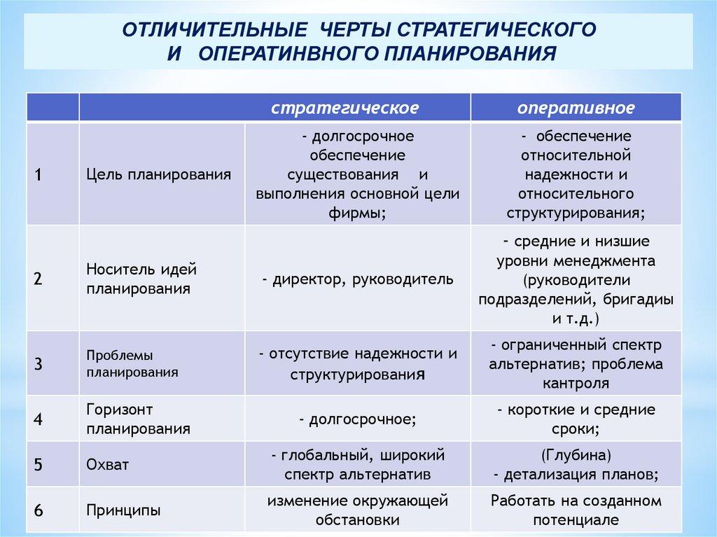 ОТЛИЧИТЕЛЬНЫЕ ЧЕРТЫ СТРАТЕГИЧЕСКОГОИ ОПЕРАТИНВНОГО ПЛАНИРОВАНИЯ