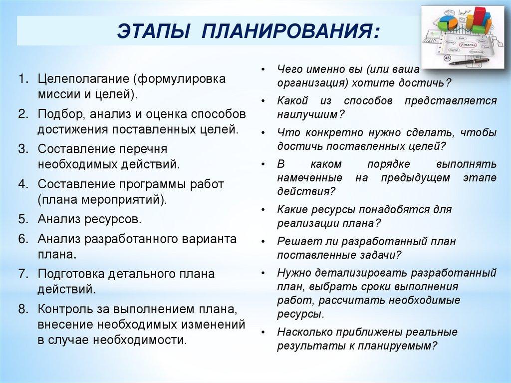 ЭТАПЫ ПЛАНИРОВАНИЯ:Чего именно вы (или ваша