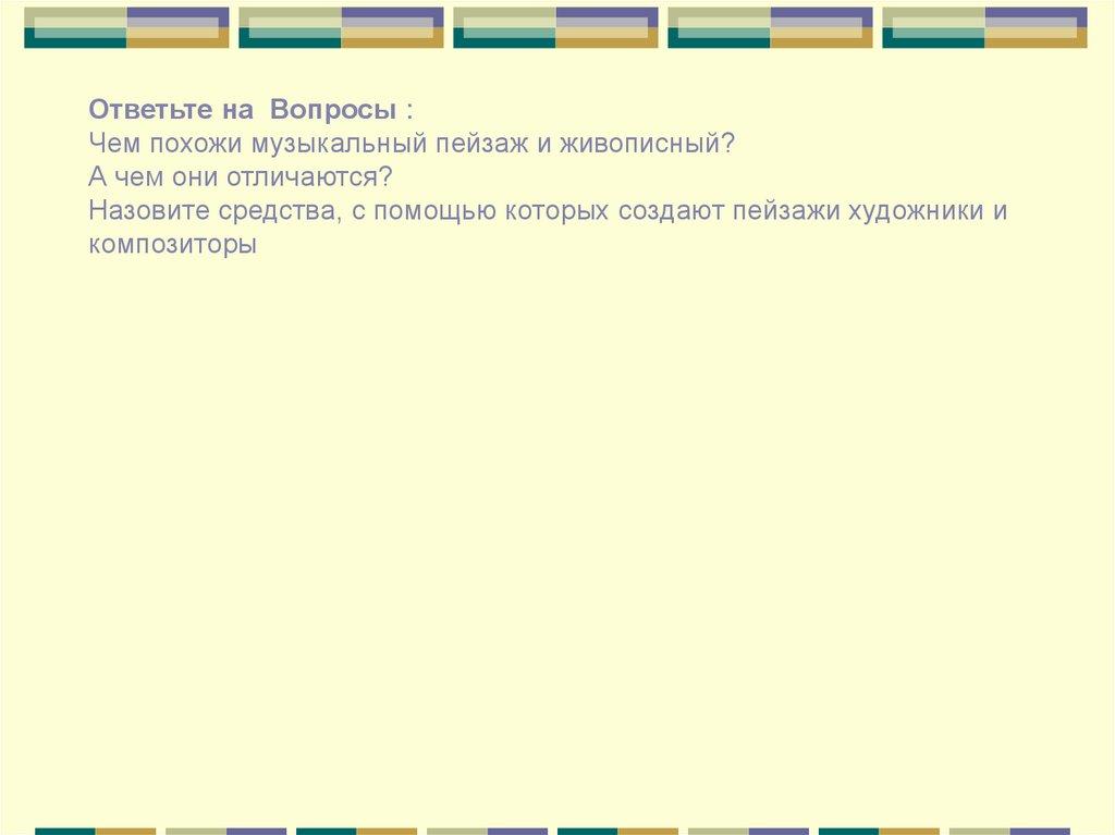 Ответьте на Вопросы :Чем похожи музыкальный пейзаж и живописный?