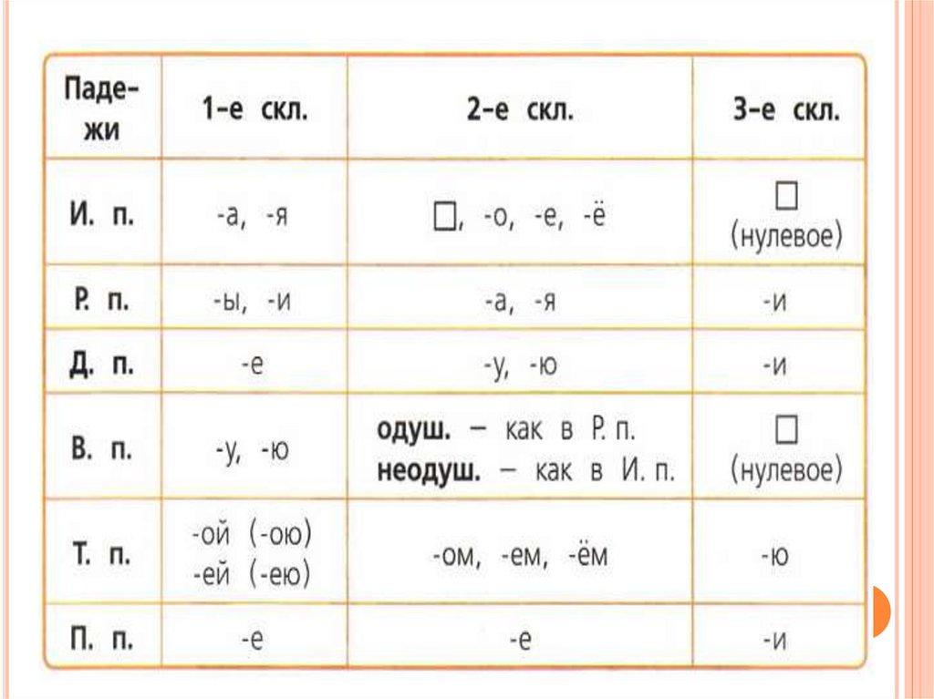 Вспоминаем таблицу. (2 скл. П.П.- окончание Е)
