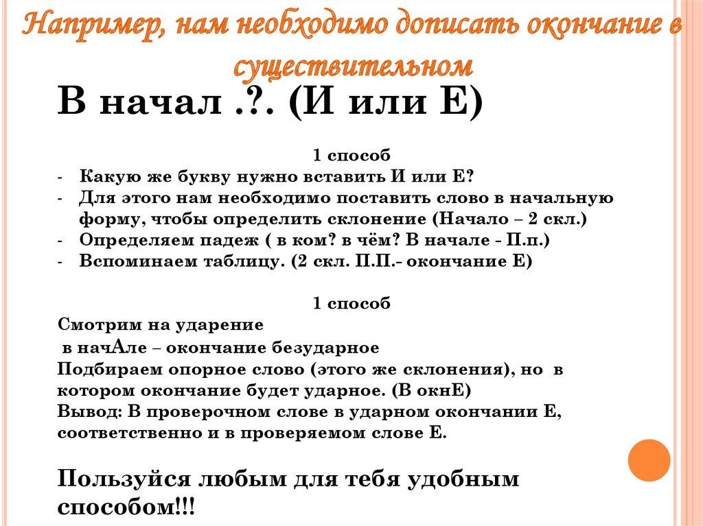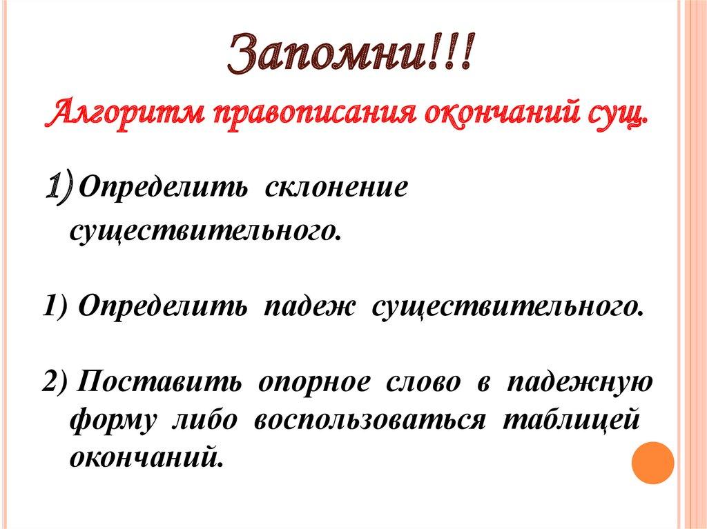 Запомни!!!Алгоритм правописания окончаний сущ.