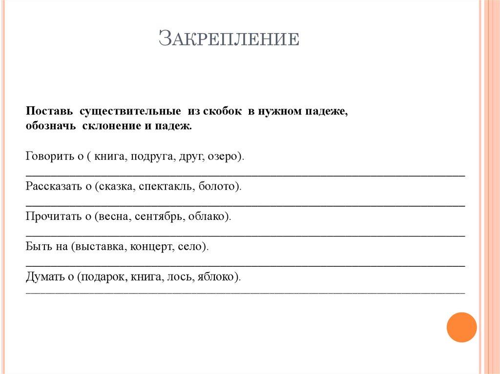 ЗАКРЕПЛЕНИЕПоставь существительные из скобок в нужном падеже,