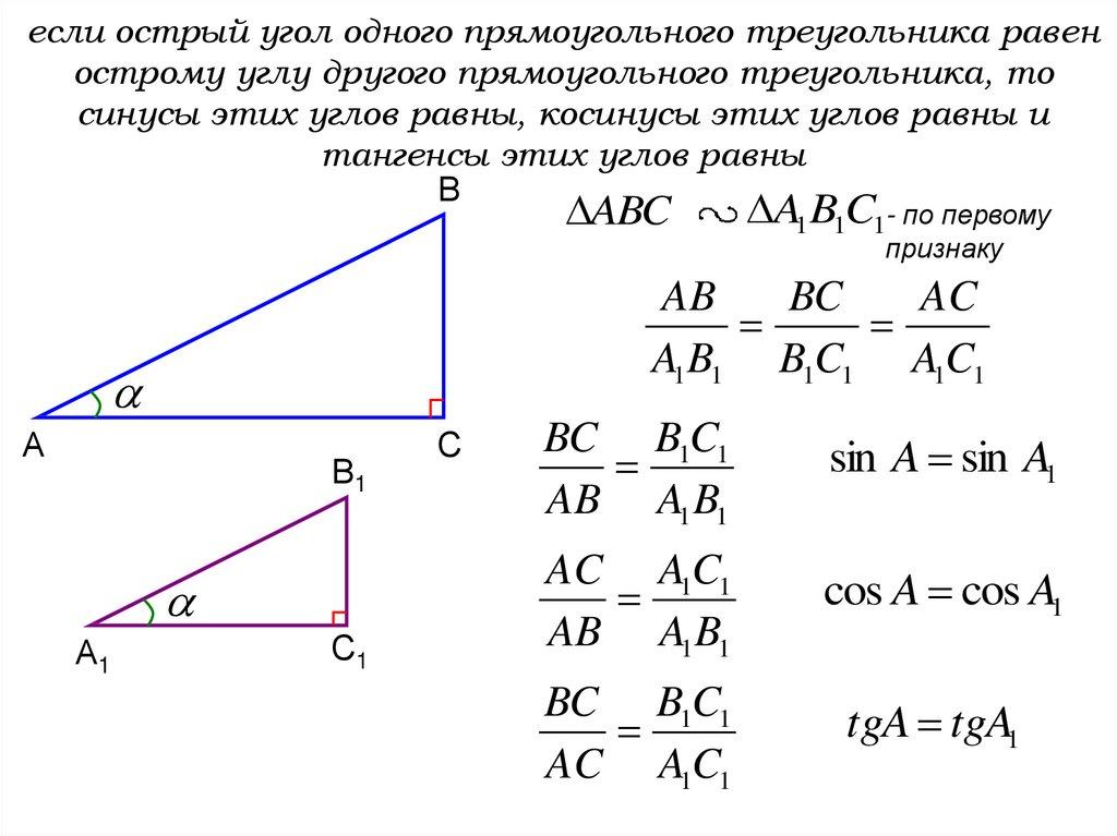 если острый угол одного прямоугольного треугольника равенострому углу другого прямоугольного треугольника, то