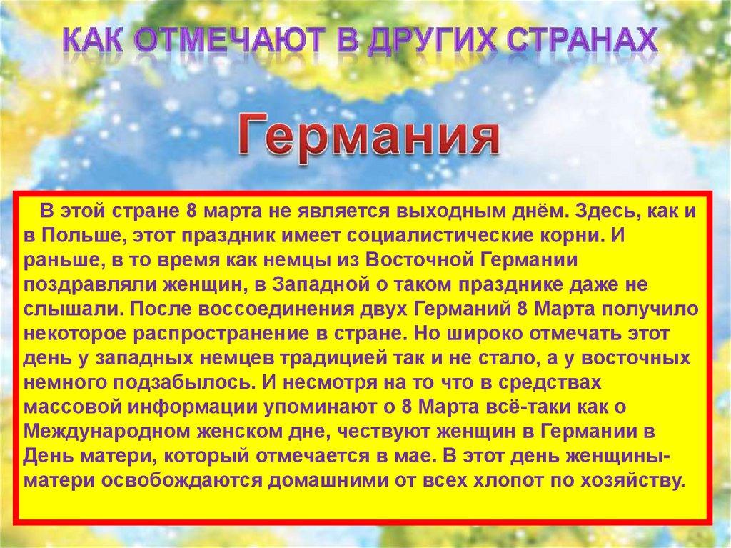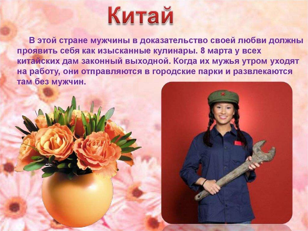 В этой стране 8 марта не является выходным днём. Здесь, как ив Польше, этот праздник имеет социалистические корни. И