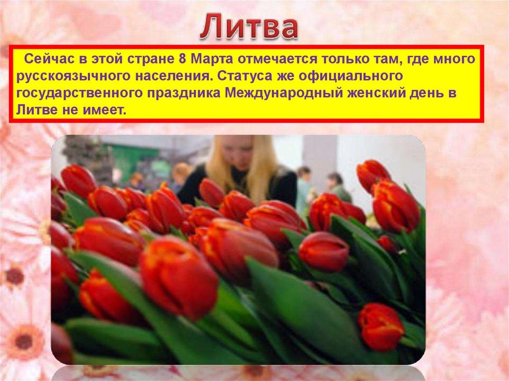 Сейчас в этой стране 8 Марта отмечается только там, где многорусскоязычного населения. Статуса же официального