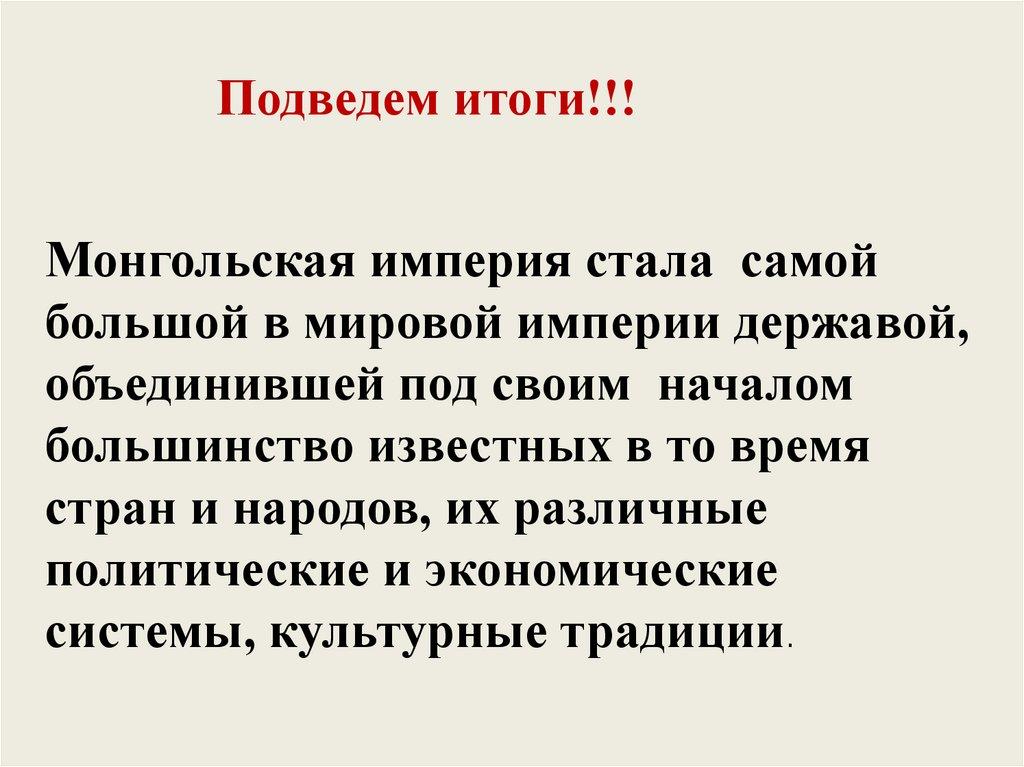 Завоевательные походы ЧингисханаРабота с текстом учебника стр.5 Задание №4
