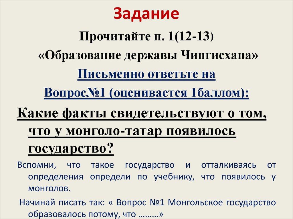 Прочитайте п. 1(12-13)«Образование державы Чингисхана»