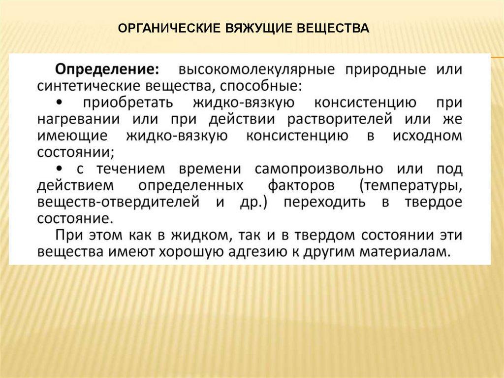 ОРГАНИЧЕСКИЕ ВЯЖУЩИЕ ВЕЩЕСТВА30.