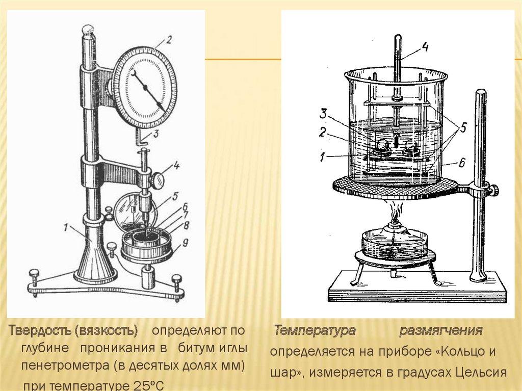 Твердость (вязкость) определяют поглубине проникания в битум иглы