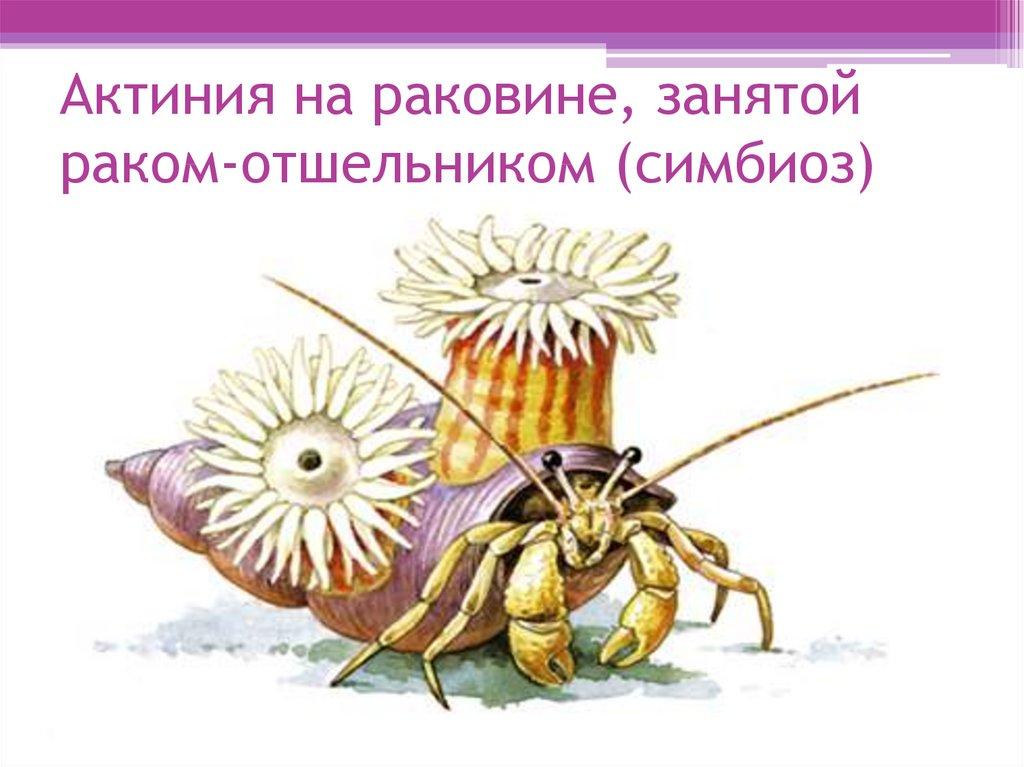 14. Актиния на раковине, занятой раком-отшельником (симбиоз)