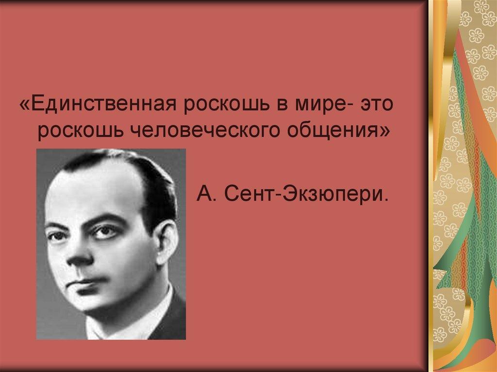 «Единственная роскошь в мире- этороскошь человеческого общения»