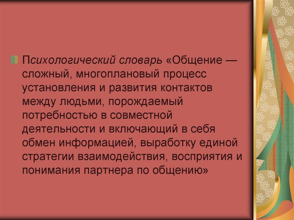 Психологический словарь «Общение —сложный, многоплановый процесс