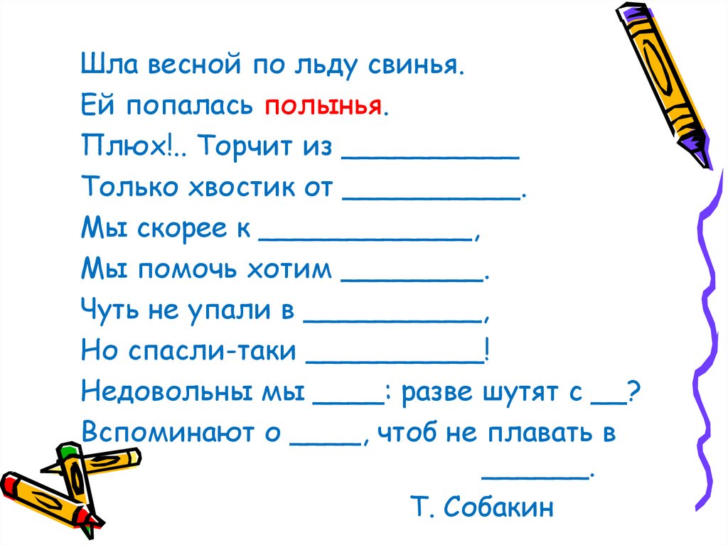 Плюх!.. Торчит из полыньиТолько хвостик от свиньи.