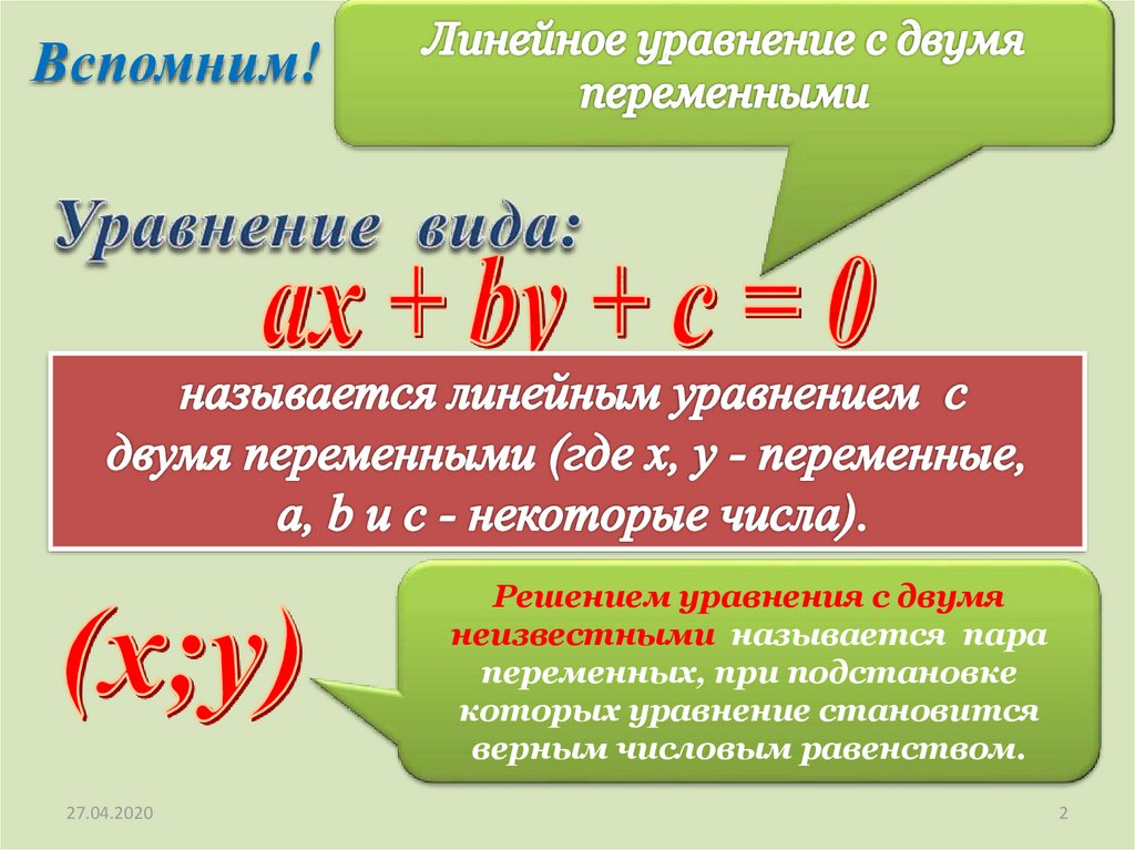 Вспомним!Решением уравнения с двумя