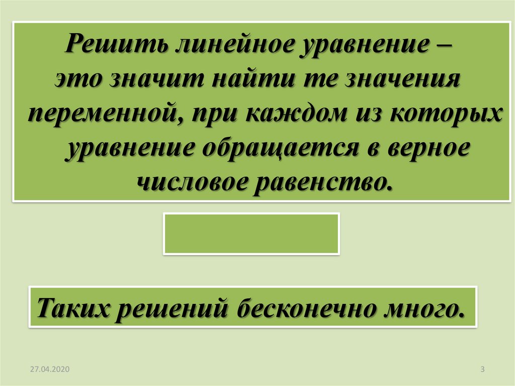 Решить линейное уравнение –это значит найти те значения