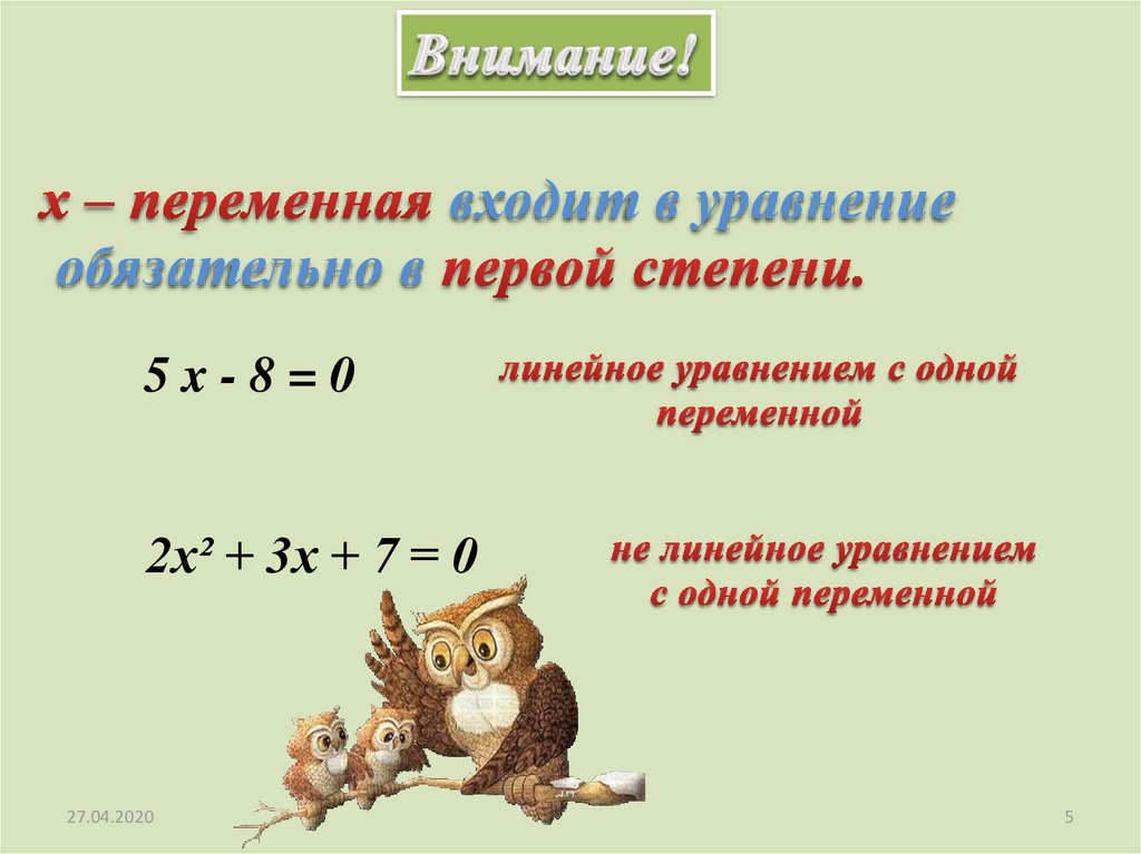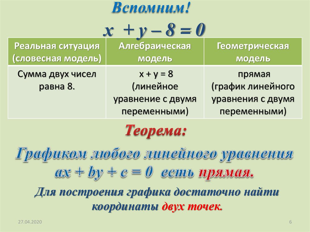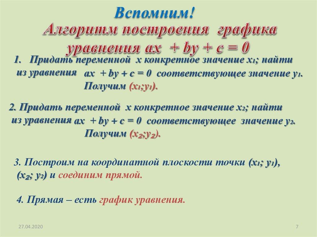 4. Прямая – есть график уравнения.