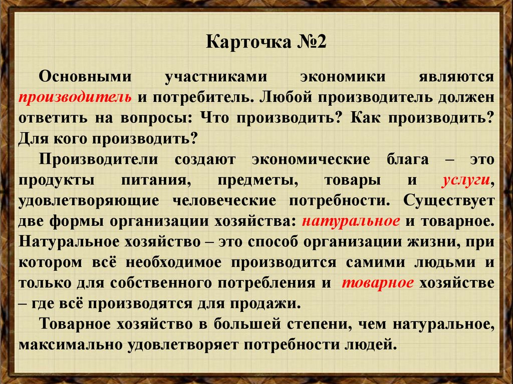 Человек в экономических отношениях. 7 класс