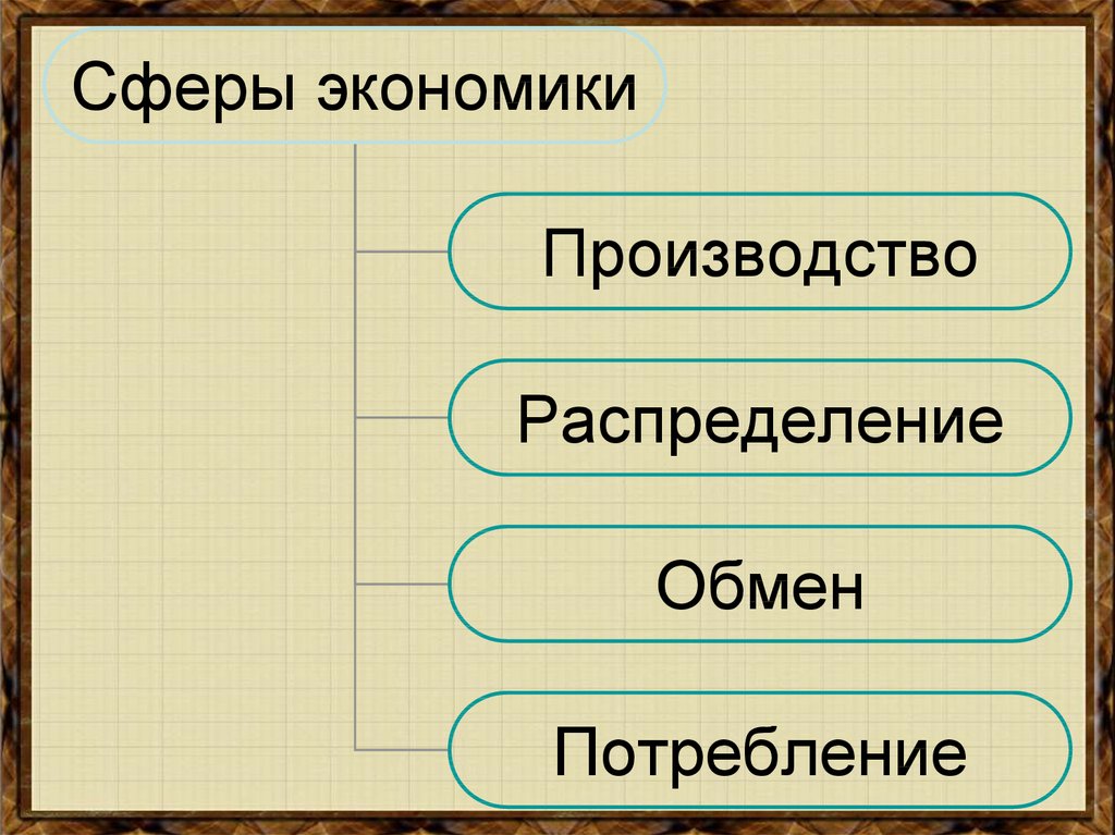 распределение, обмен, потребление.