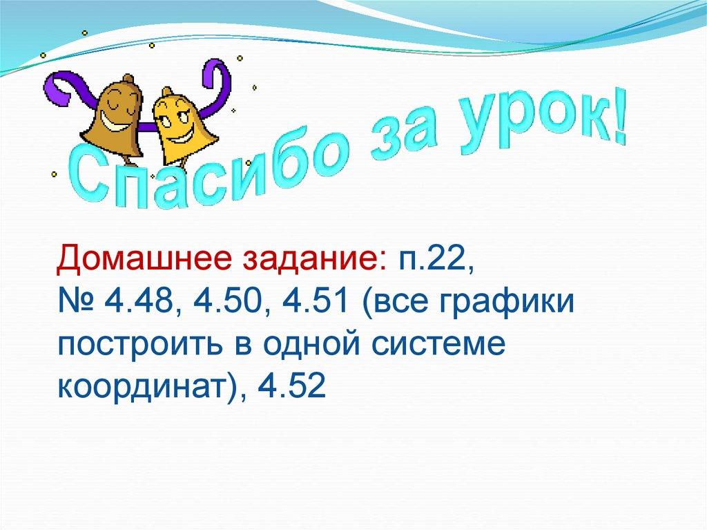 Домашнее задание: п.22,№ 4.48, 4.50, 4.51 (все графики