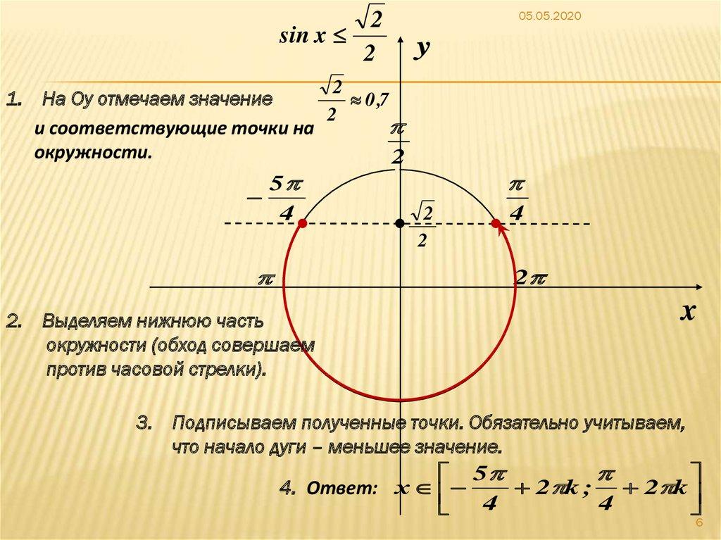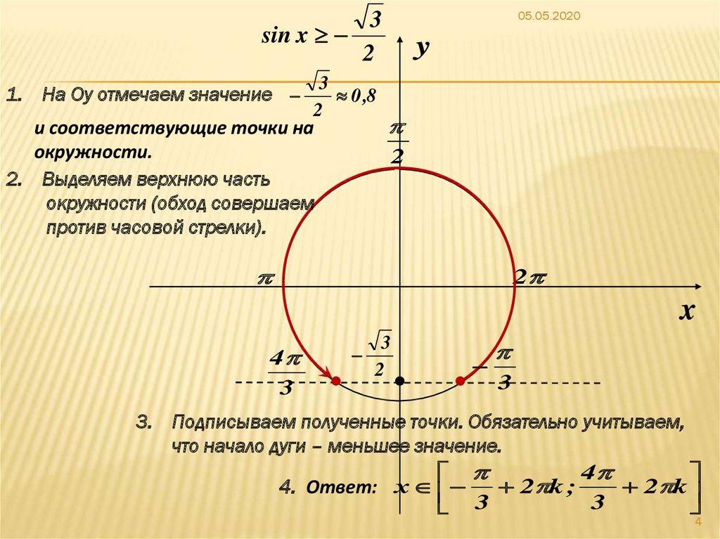 3. Неравенство sint > a Алгоритм решения