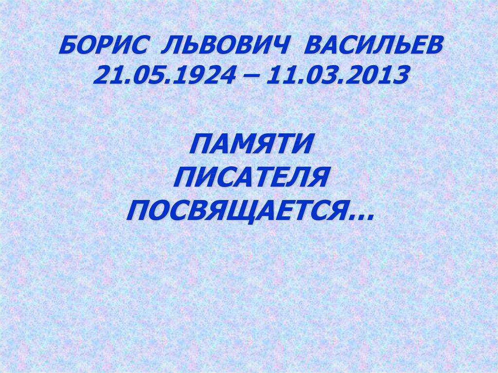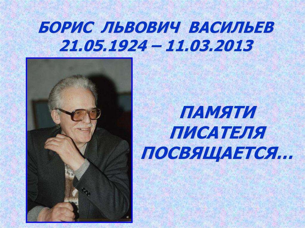 БОРИС ЛЬВОВИЧ ВАСИЛЬЕВ21.05.1924 – 11.03.2013