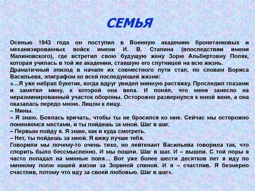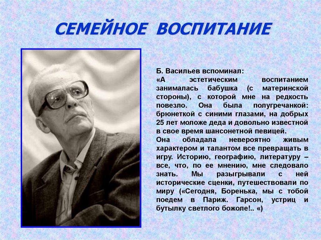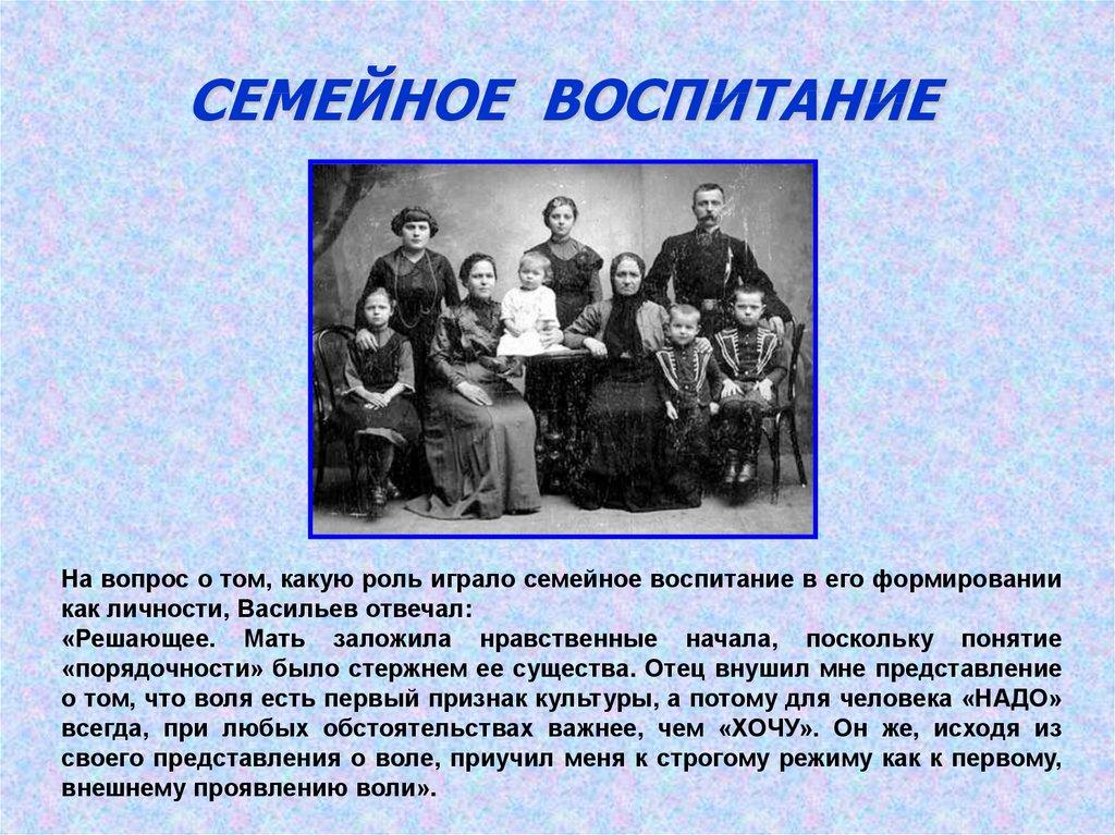 СЕМЕЙНОЕ ВОСПИТАНИЕБ. Васильев вспоминал: