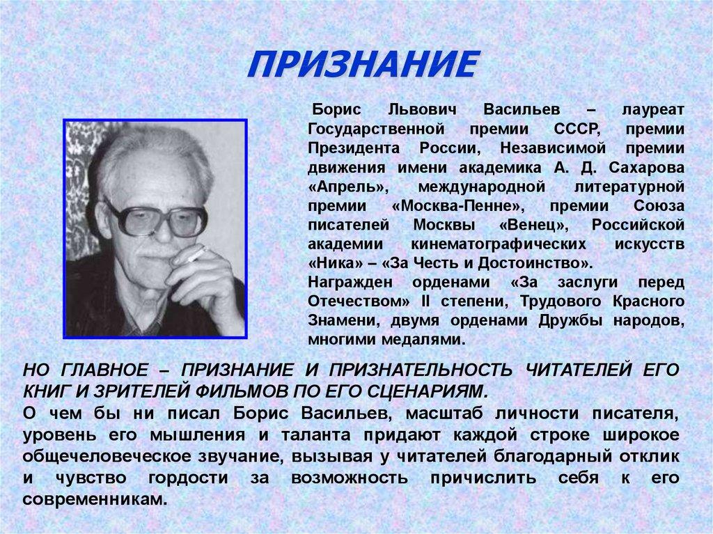 О чем бы ни писал Борис Васильев, масштаб личности писателя,