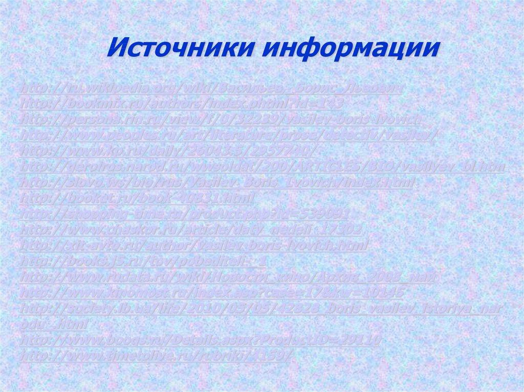 Источники информацииhttp://ru.wikipedia.org/wiki/Васильев,_Борис_Львович
