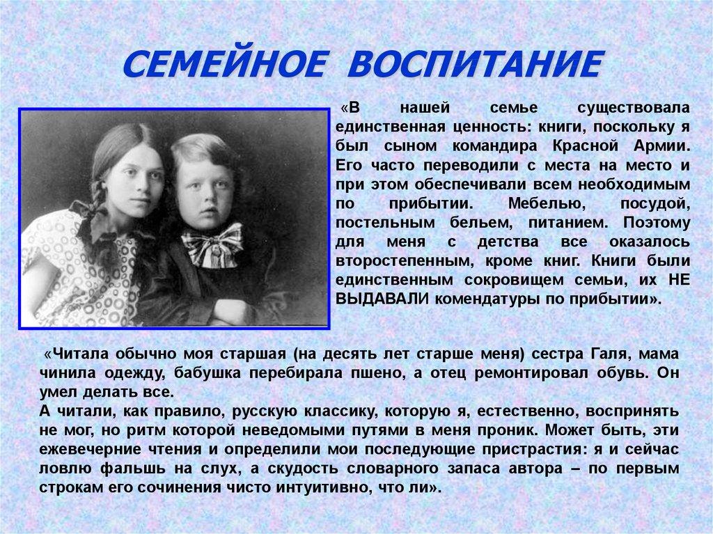 СЕМЕЙНОЕ ВОСПИТАНИЕНа вопрос о том, какую роль играло семейное воспитание в его формировании