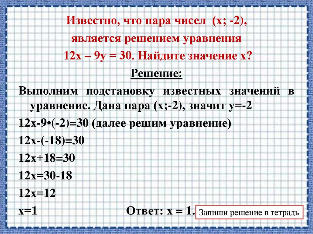 Чтобы определить является ли пара чиселрешением уравнения, необходимо выполнить