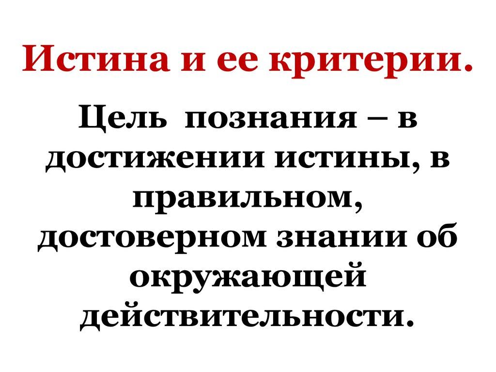 Цель познания – вдостижении истины, в