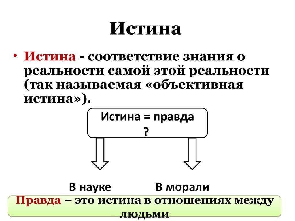 • Истина - соответствие знания ореальности самой этой реальности